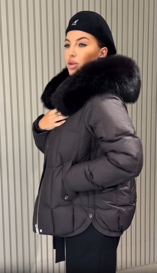 Damska kurtka casualowa z kołnierzem futrzanym w jednolitym kolorze