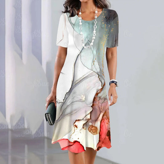 🌹Naszyjnik z różą gratis🌸Damska, uniwersalna, casualowa sukienka z nadrukiem