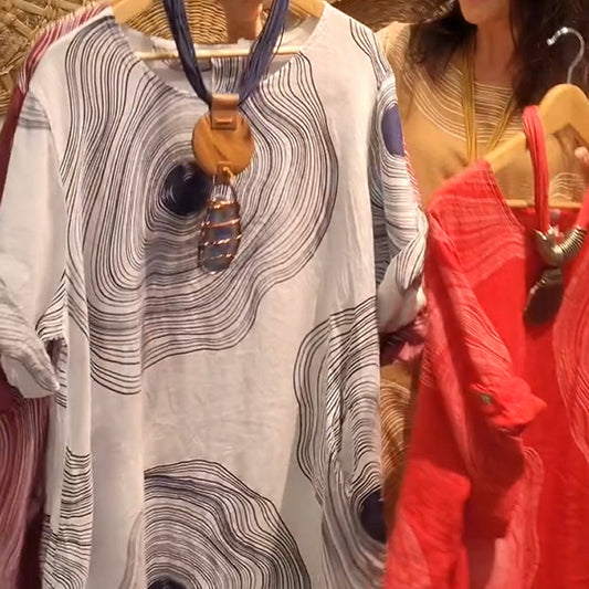 Damska sukienka z nadrukiem V-neck z kieszeniami