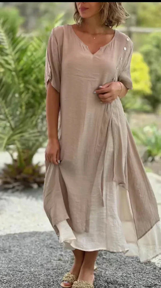 Dwuczęściowa asymetryczna sukienka z krótkimi rękawami