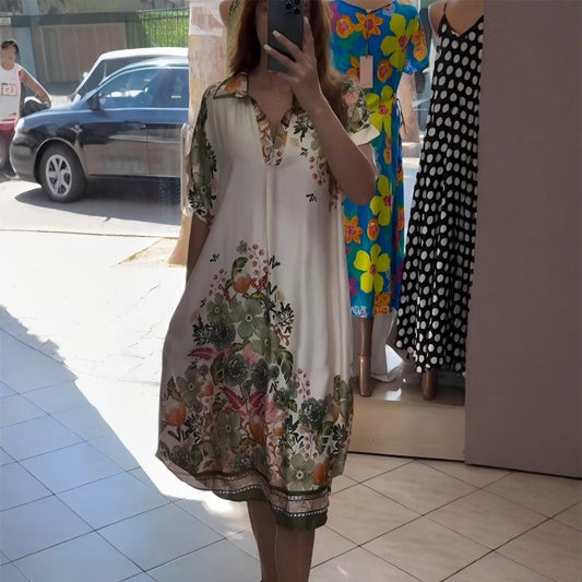 Luźna sukienka w kwiaty z dekoltem w szpic