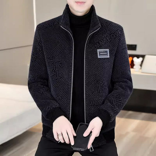 Męska, kaszmirowa, ciepła, swobodna kurtka ze stójką