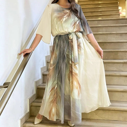 Sukienka maxi z okrągłym dekoltem i nadrukiem, z paskiem