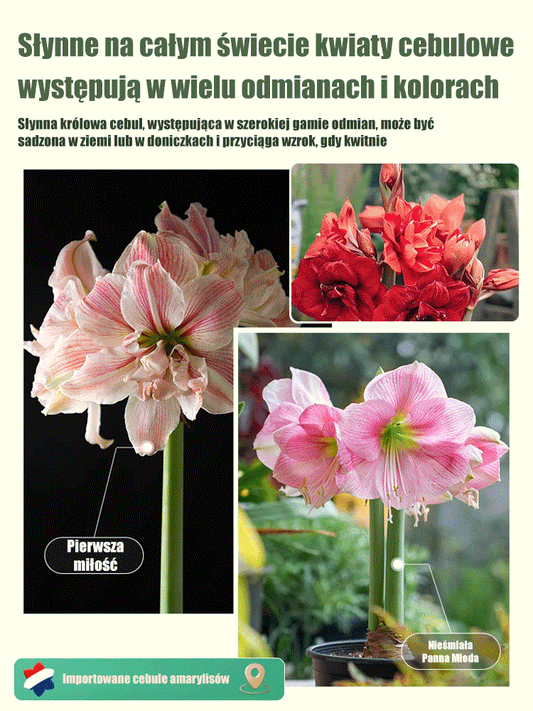 „Dobra wróżba” holenderskie importowane cebule amarylisu pełnego.