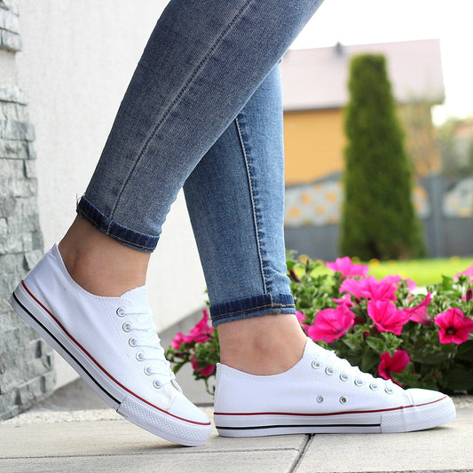 BIAŁE SZNUROWANE TRAMPKI DAMSKIE GŁADKIE WHITE