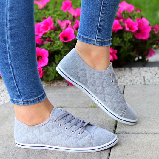 Szare ELEGANCKIE PIKOWANE TENISÓWKI TRAMPKI SLIM