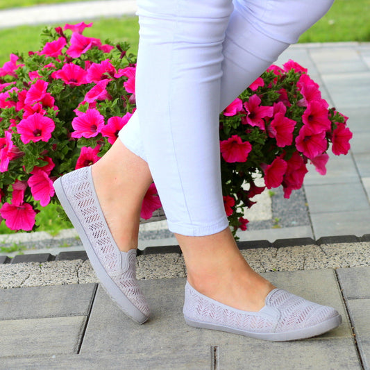 SZARE MATERIAŁOWE WYCIĘTE TENISÓWKI BALERINKI DAMSKIE NA LATO