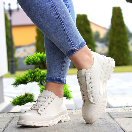 Krótkie Jasno Beżowe Trampki Damskie Sznurowane Star