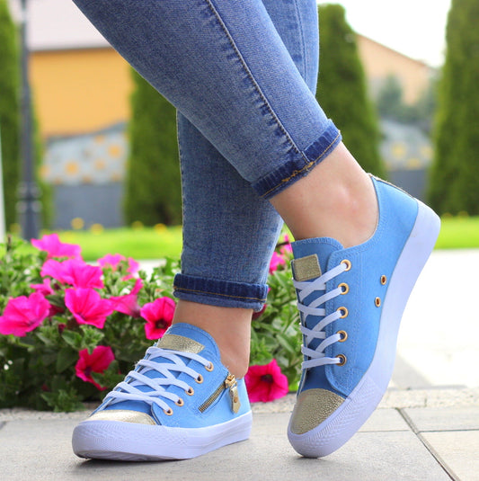 JEANS SZNUROWANE TENISÓWKI TRAMPKI ZŁOTY NOSEK SUWAK