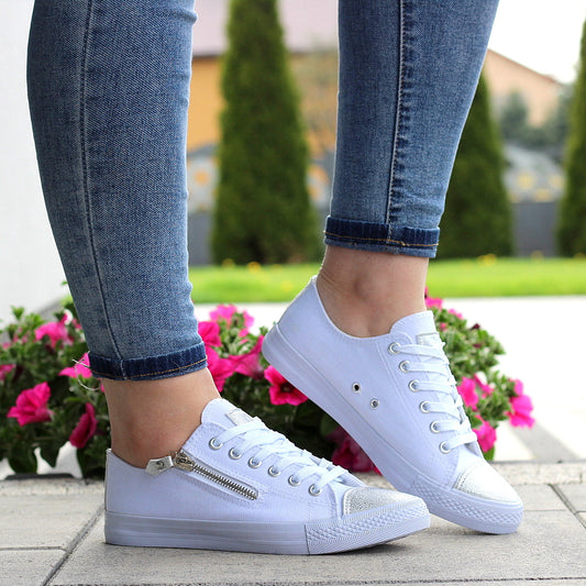W promocjiBIAŁE TENISÓWKI TRAMPKI SREBRNY NOSEK SUWAK