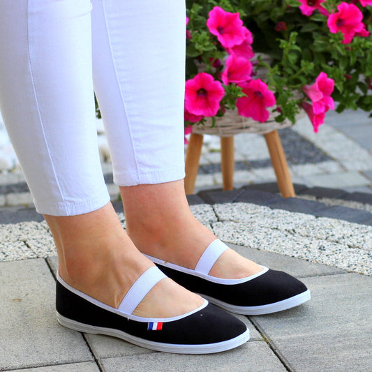 CZARNE MATERIAŁOWE WYCIĘTE TENISÓWKI BALERINKI DAMSKIE NA LATO