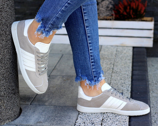 W promocjiSzare tenisówki damskie sznurowane z paskami