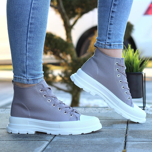 Wysokie Szare Trampki Damskie Sznurowane Star