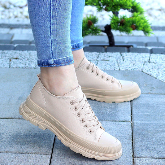 Krótkie Beżowe Trampki Damskie Sznurowane Star