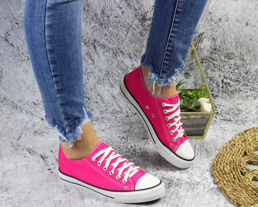 W promocjiRóżowe sznurowane gładkie trampki damskie