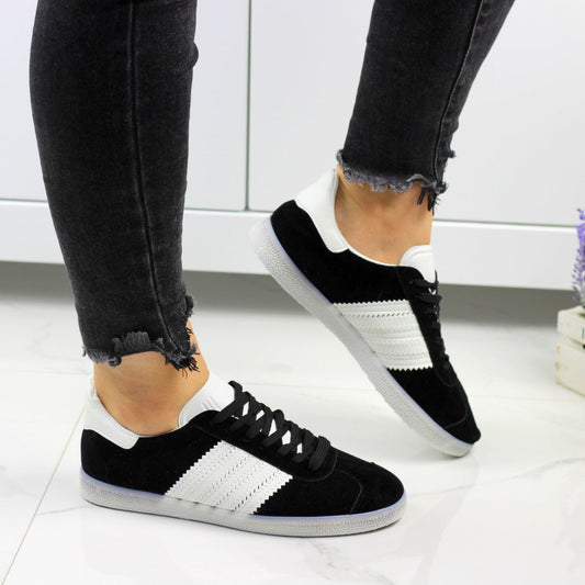 Czarne tenisówki damskie sznurowane z paskami