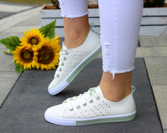 Białe ażurowe tenisówki damskie sznurowane z mięciutkiej eko skórki