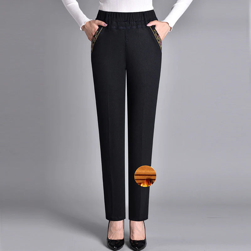 prostą, szeroką nogawką - Dobrze wykonany, aby ukryć nadmiar tłuszczu w talii, prosty krój wydłuża linię nóg.
