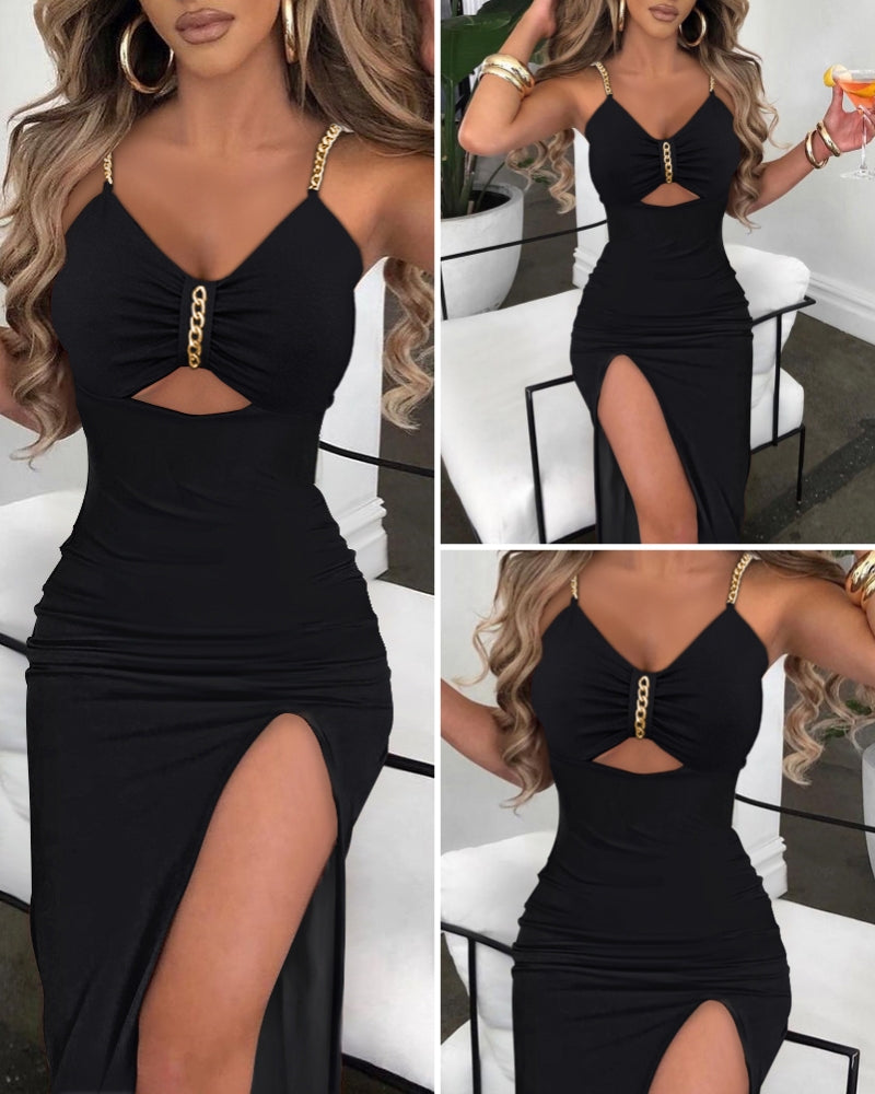 2023 wybuchowa sukienka temperamentu, sukienka z rozcięciem na łańcuszku na ramieniu