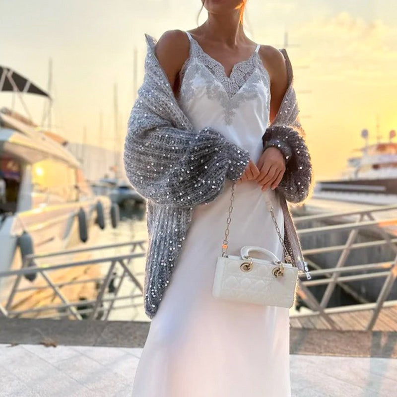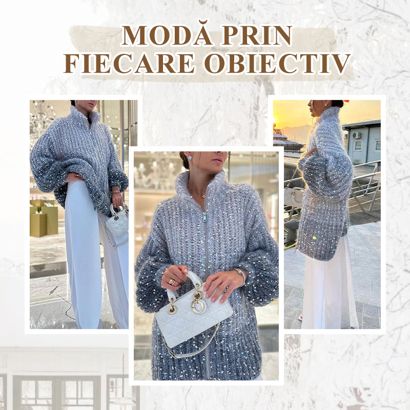 【Nowości 2025】Damski sweter z dzianiny z cekinami i zamkiem błyskawicznym na całej długości