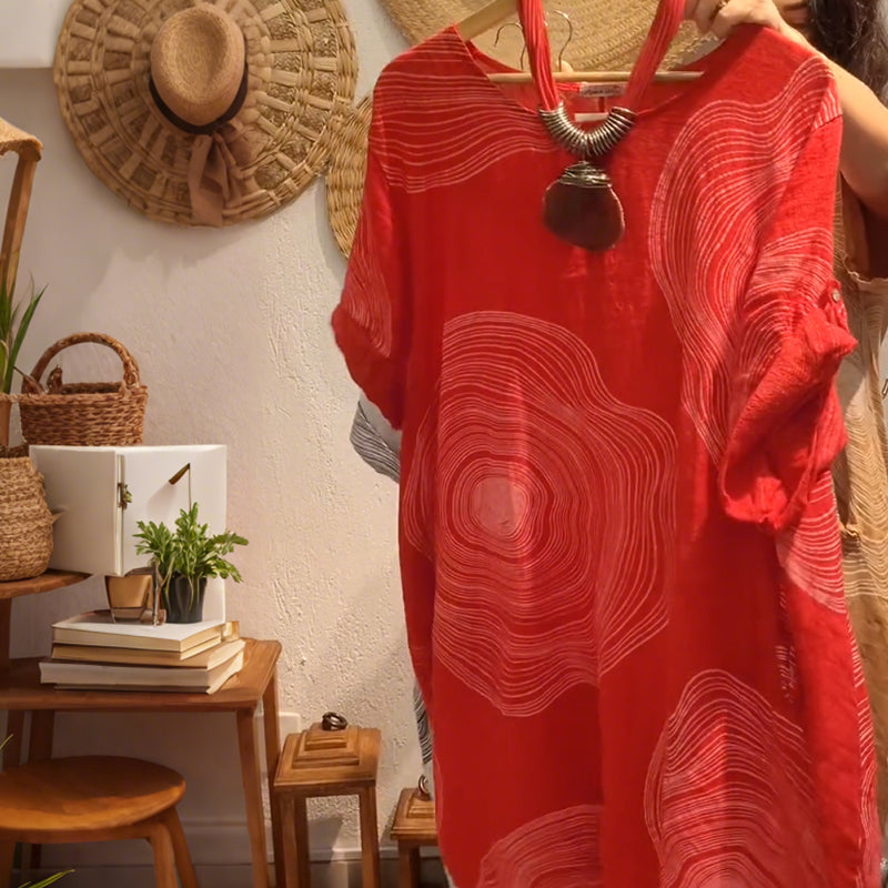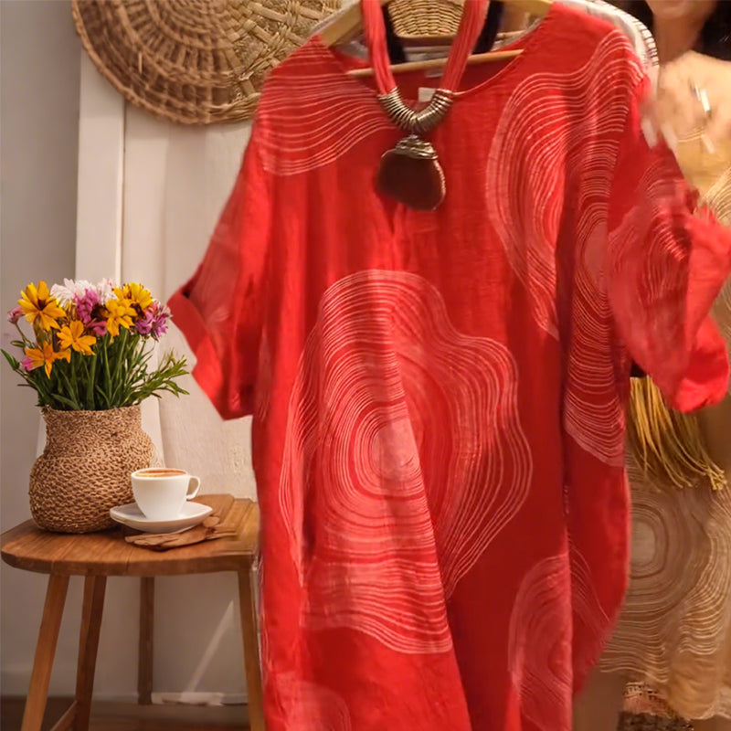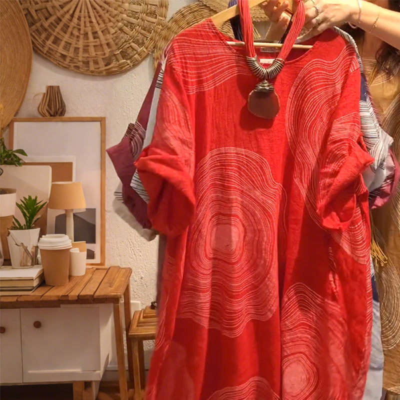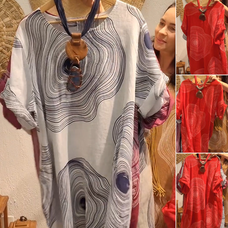 Luźny krój - Zaprojektowana w luźnym i pochlebnym kroju, ta sukienka jest przewiewna i można się w niej swobodnie poruszać. Delikatnie układa się na ciele i jest idealna na ciepłe lub chłodne pory roku.