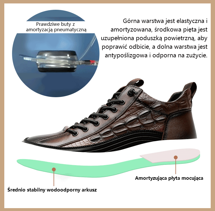 Włoskie buty na co dzień z nadrukiem krokodyla z poduszką powietrzną dla mężczyzn