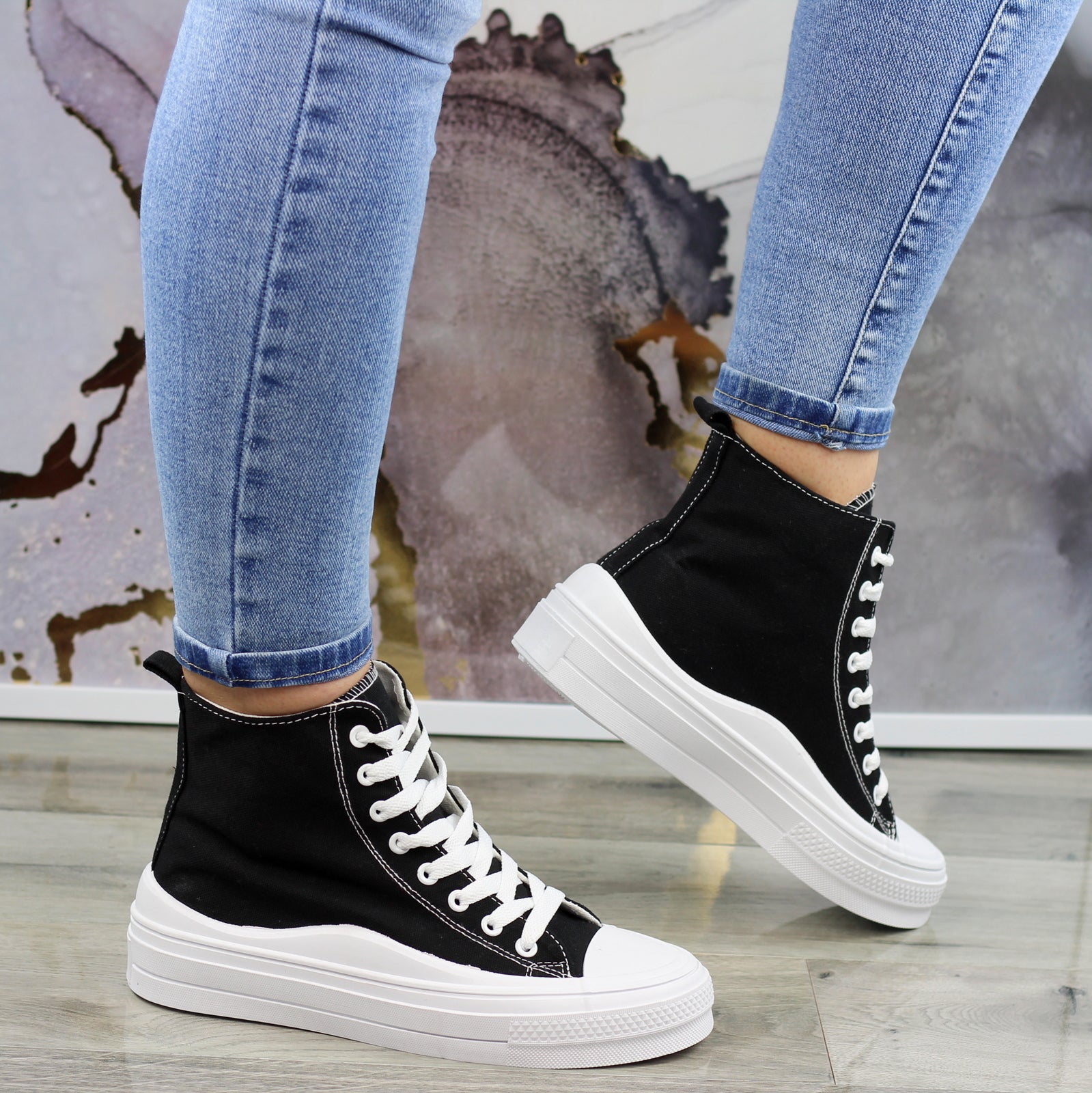 CZARNE DŁUGIE TRAMPKI DAMSKIE NA GRUBEJ PODESZWIE