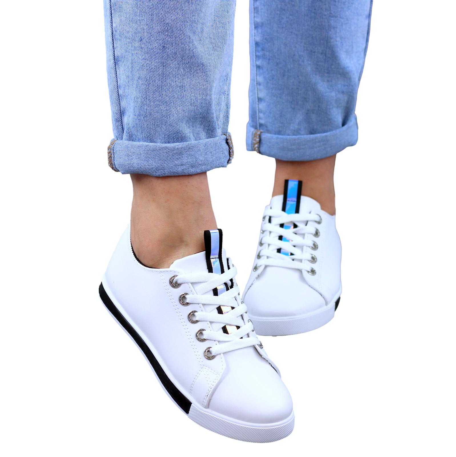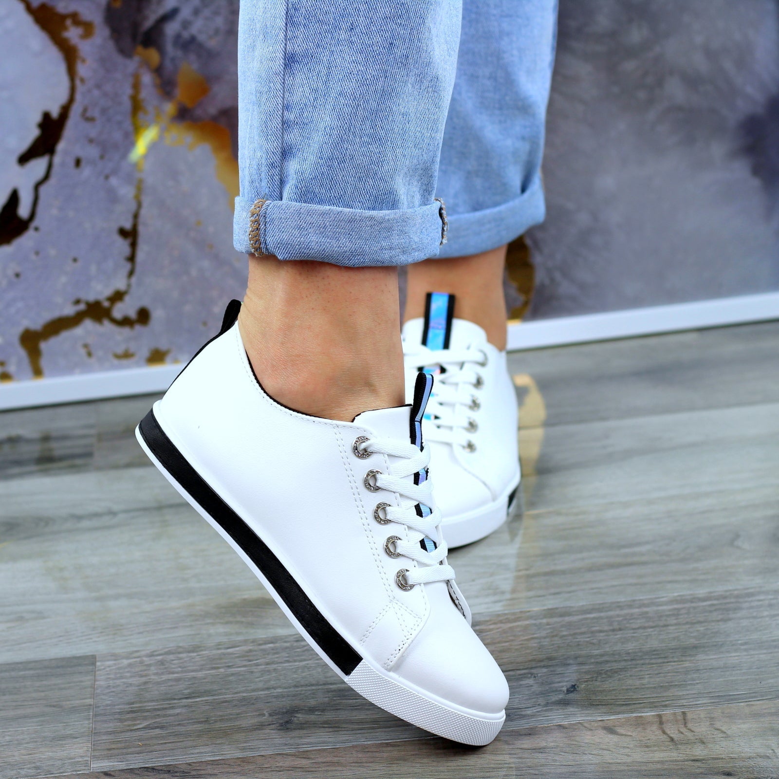 MODNE BIAŁO CZARNE SKÓRZANE TRAMPKI DAMSKIE SZNUROWANE