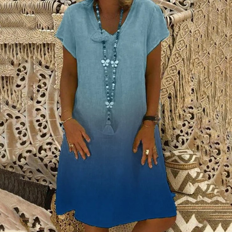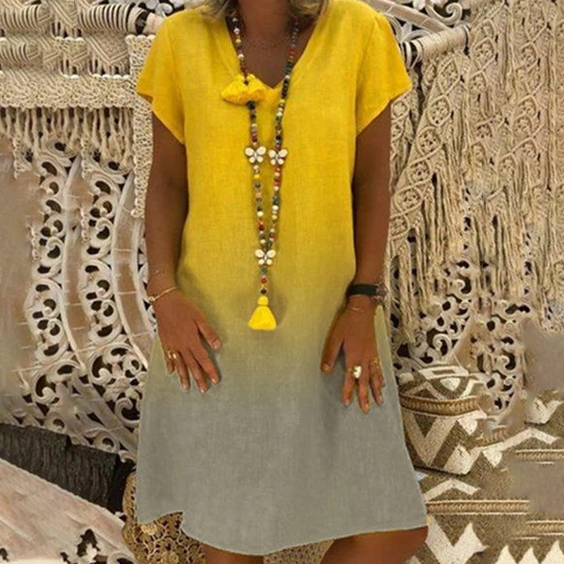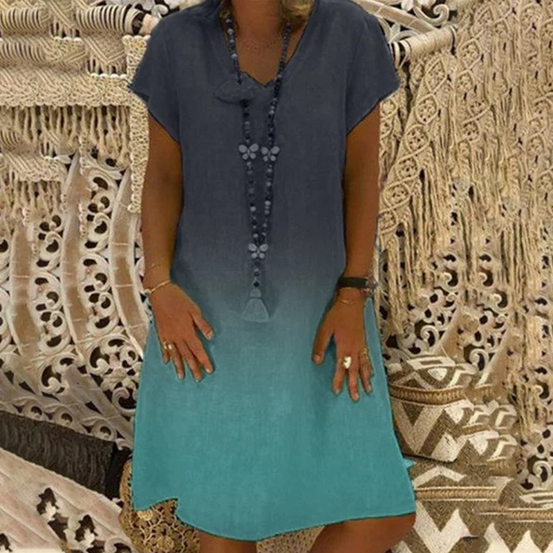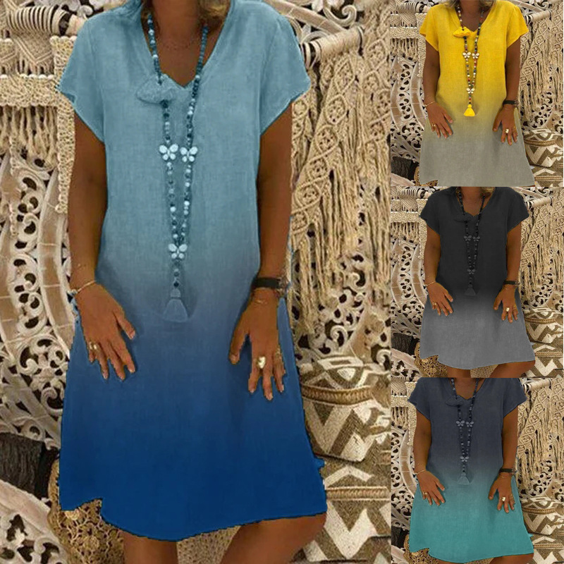 💃Sukienka casualowa z dekoltem w serek i krótkim rękawem w stylu gradientu
