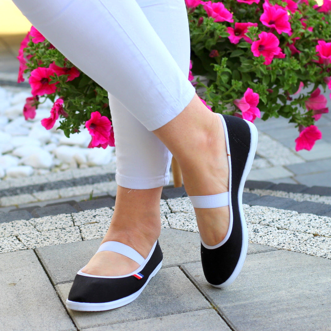 CZARNE TENISÓWKI PŁASKIE CZESZKI NA GUMKĘ