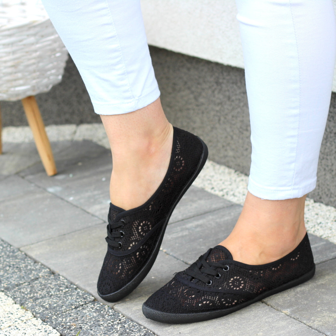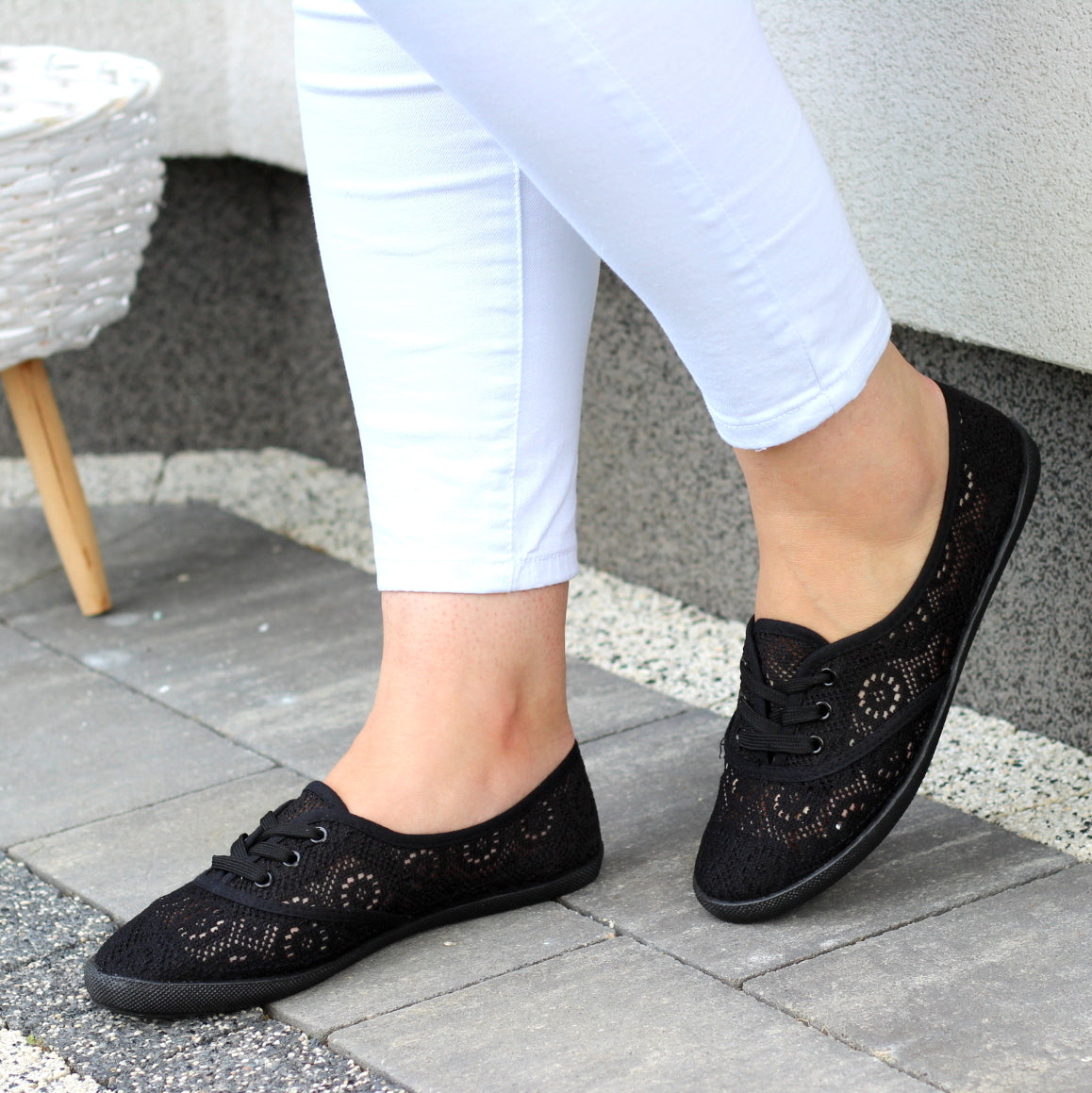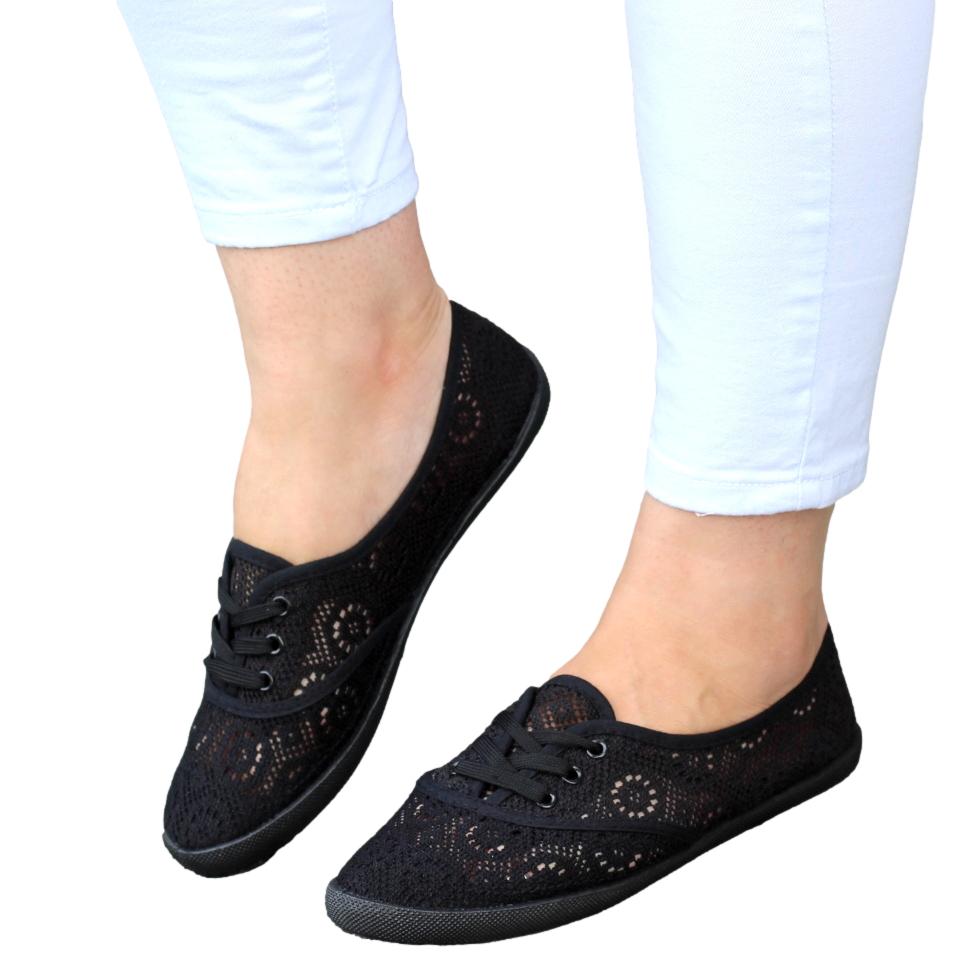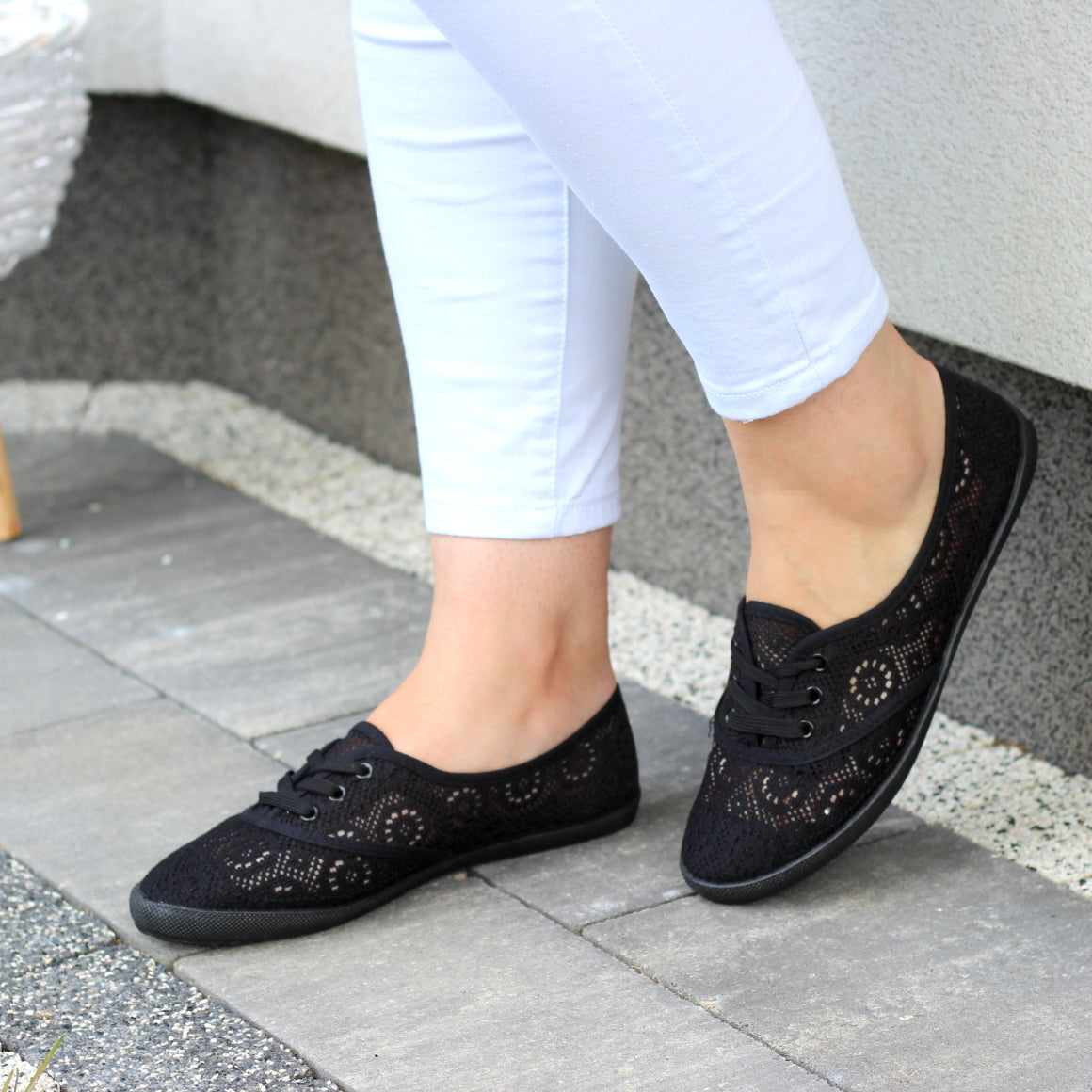 Czarne mięciutkie tenisówki damskie wykonane z przewiewnej koronki