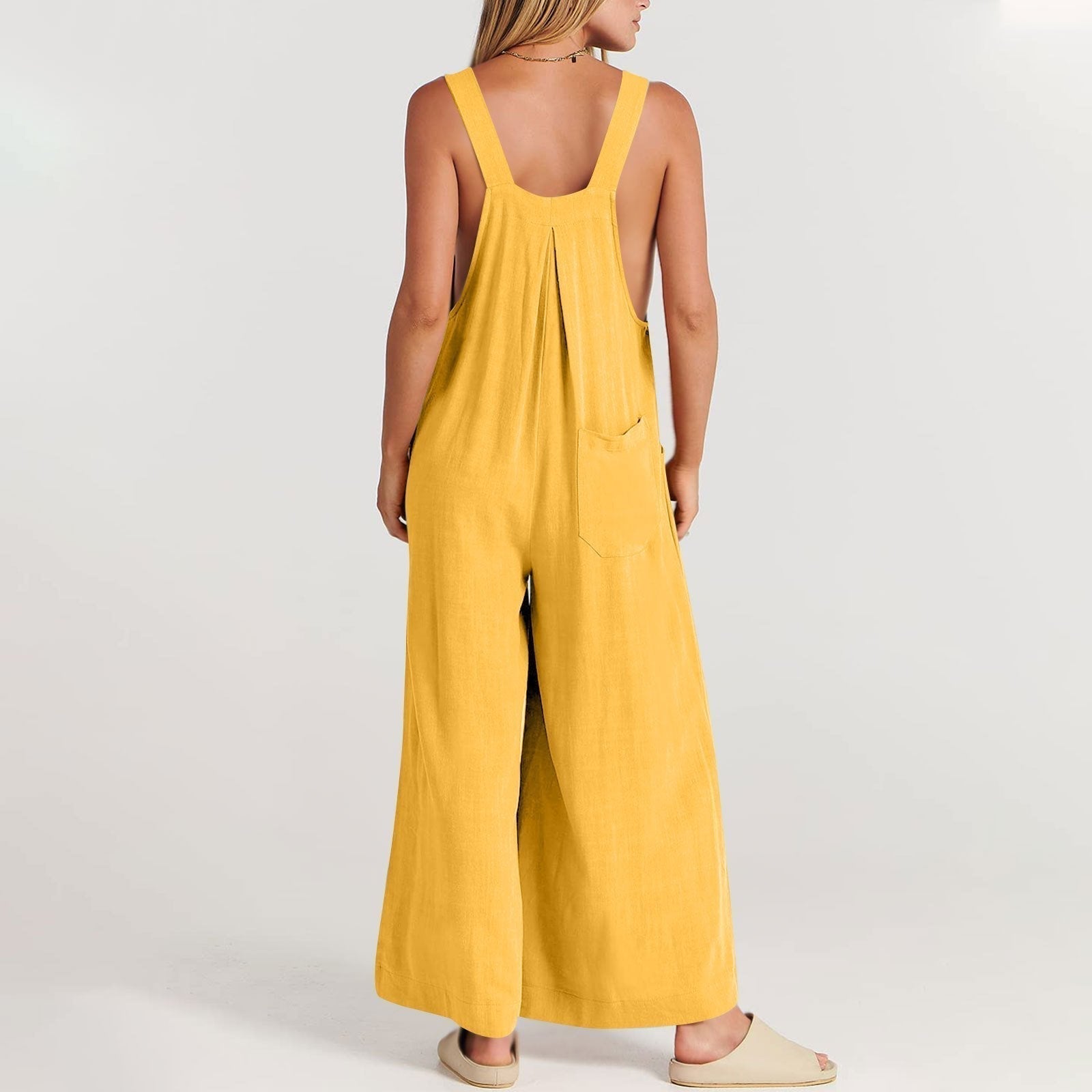Damski kombinezon bez rękawów z szerokimi nogawkami i kieszeniami