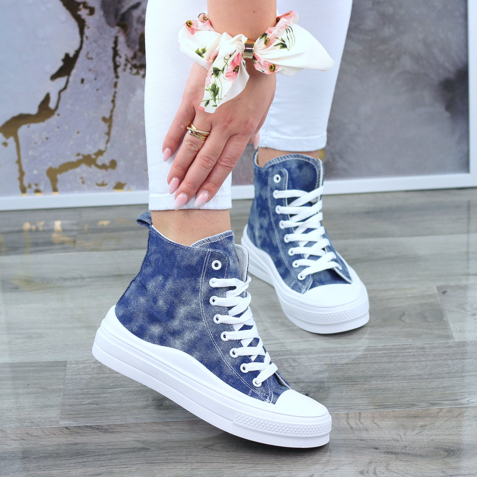 Jeans DŁUGIE TRAMPKI DAMSKIE NA GRUBEJ PODESZWIE