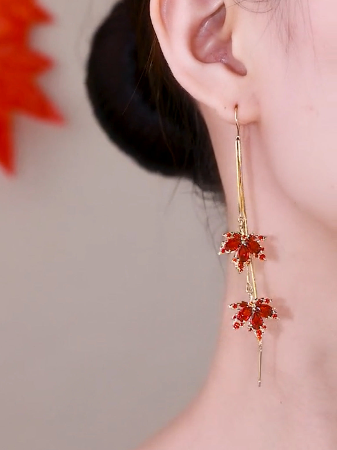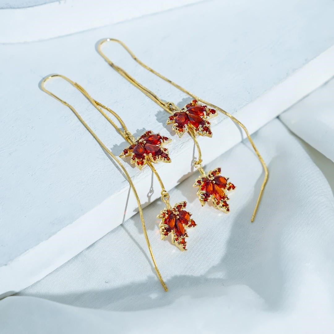Pakiet: Kolczyki z frędzlami z podwójnym liściem klonowym*1 pair