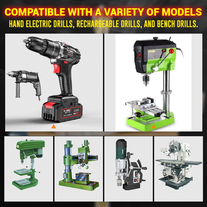 - Antypoślizgowy trzpień trójkątny, łatwy do zamocowania i stabilny bez poślizgu. Nie powoduje przesunięcia, wiercenie jest dokładne i łatwiejsze w obsłudze.