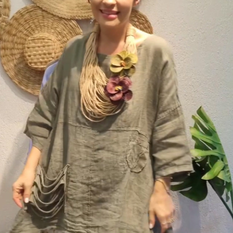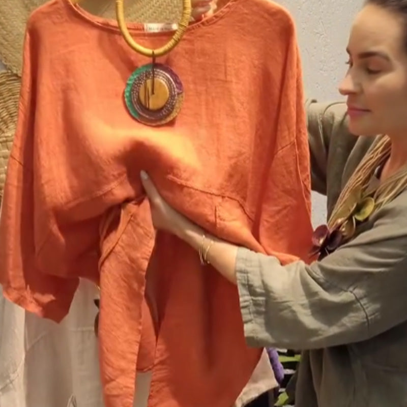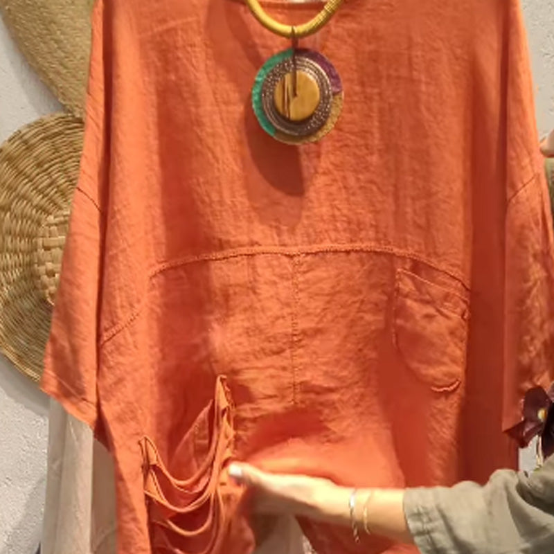 ✨Lniany top z kieszeniami bocznymi dla kobiet o luźnym kroju