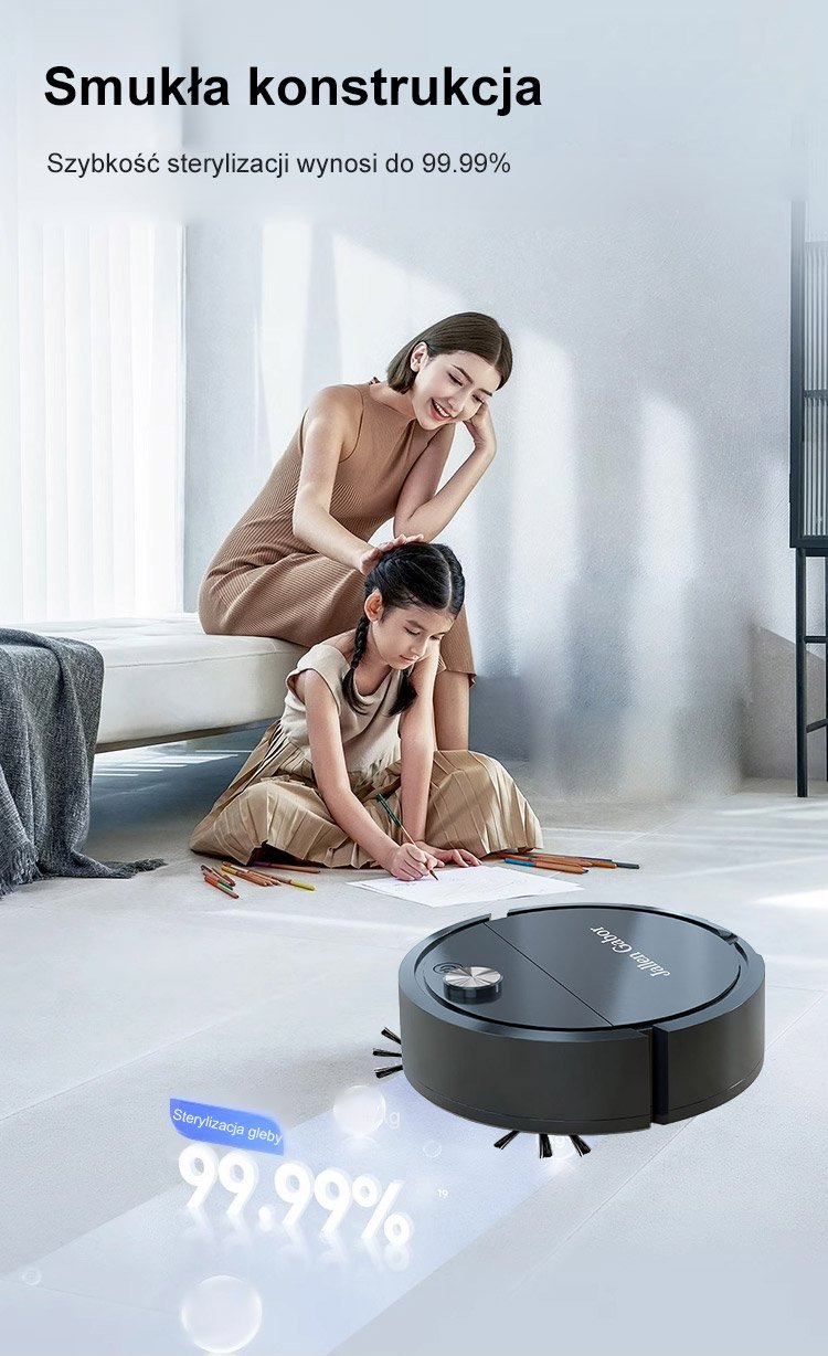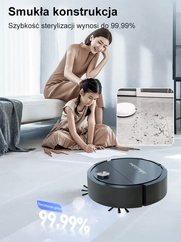 Niski poziom hałasu i wydajny antybakteryjny robot zamiatający