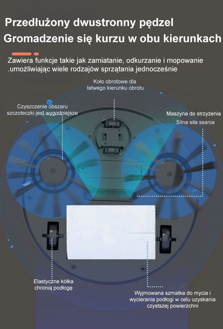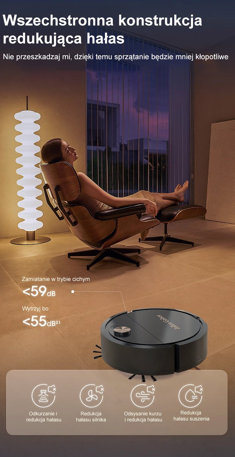 Niski poziom hałasu i wydajny antybakteryjny robot zamiatający