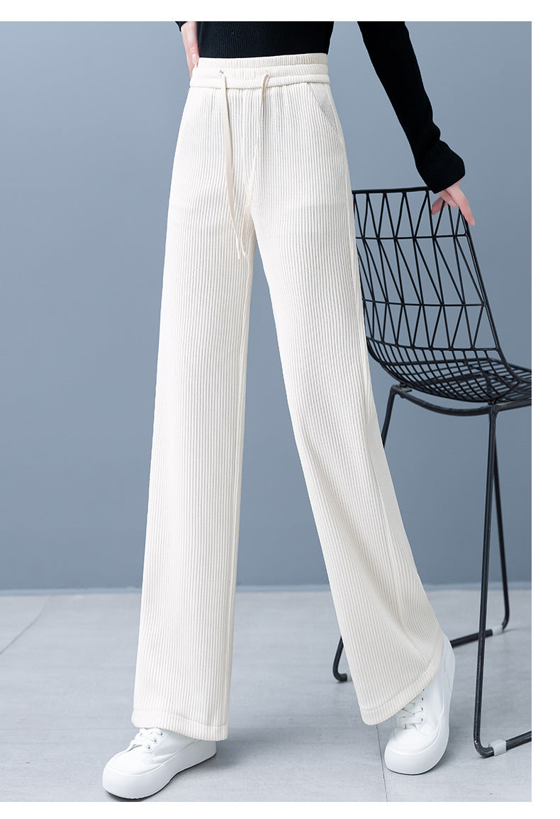 🔥✨Wyprzedaż świąteczna🎅🎁 Damskie spodnie z szeroką nogawką i sznurkiem z podszewką i wzmocnionym jednolitym kolorem.