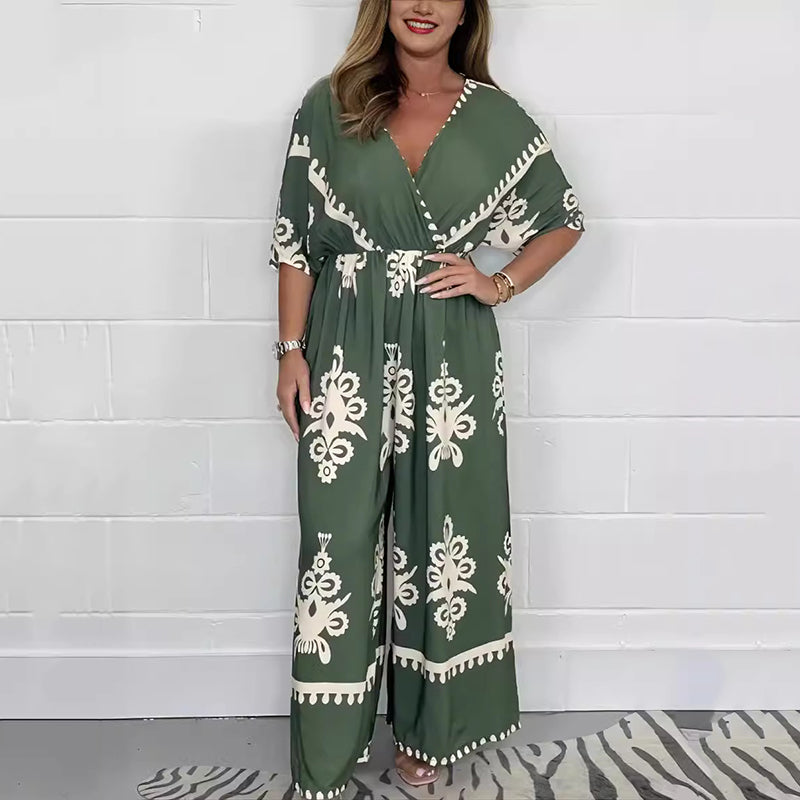 💃Damski kombinezon z szerokimi nogawkami i dekoltem w kształcie litery V