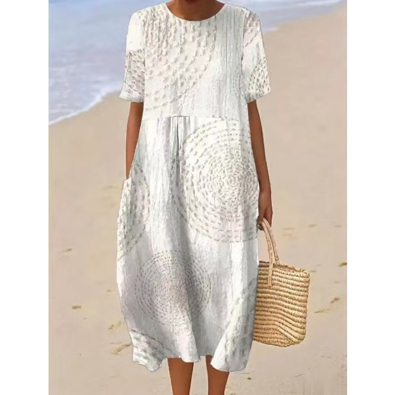 LUŹNY KRÓJ: Zaprojektowana z myślą o wygodzie, ta sukienka midi ma luźny, luźny krój, który zapewnia swobodę ruchów i przewiewność, dzięki czemu idealnie nadaje się do codziennego noszenia.