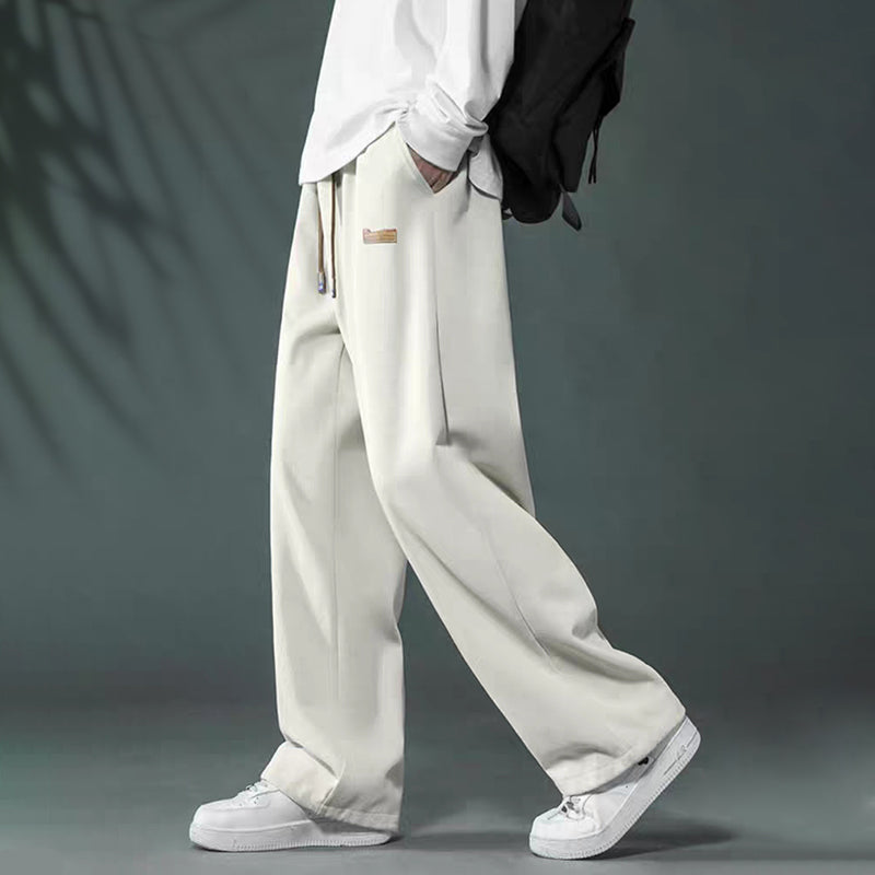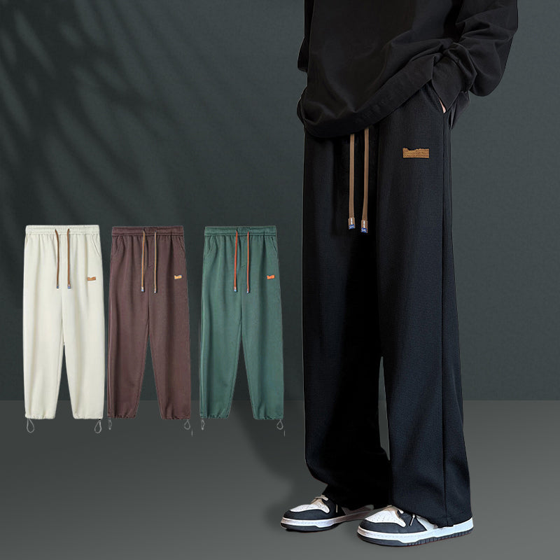 Męskie spodnie typu lounge z szeroką nogawką i prostymi nogawkami zostały zaprojektowane z kieszeniami na telefony komórkowe, portfele, karty, klucze i artykuły codziennego użytku, dzięki czemu możesz cieszyć się ruchem bez użycia rąk.