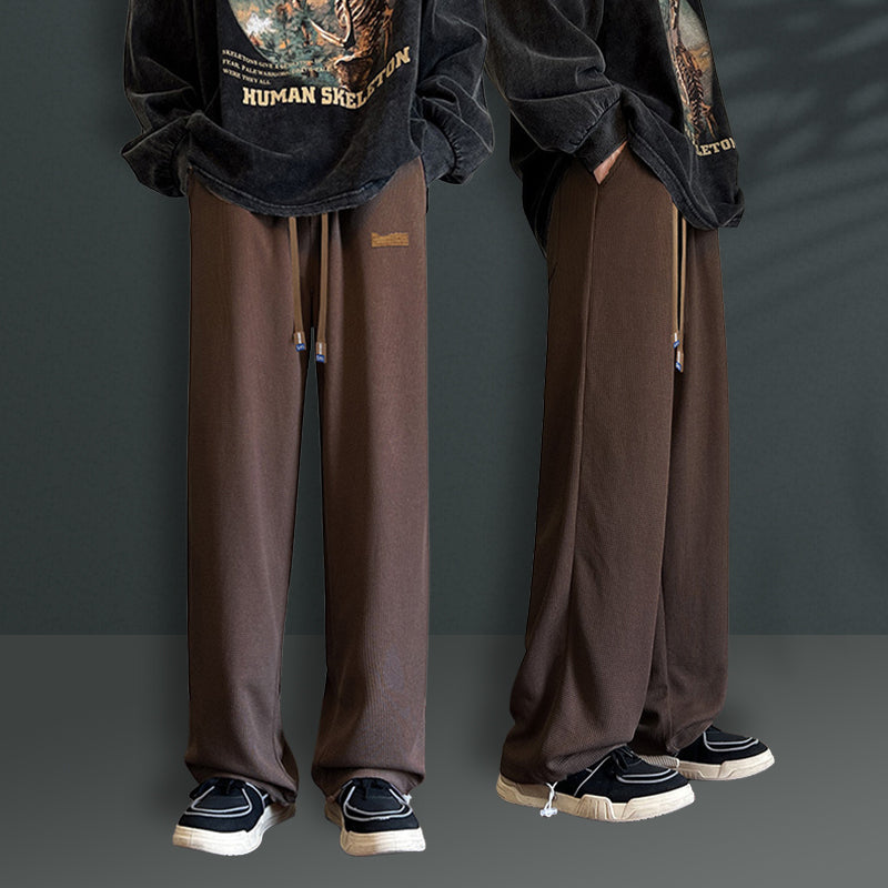 Te dzianinowe spodnie dla mężczyzn mają unikalny wzór waflowy, który dodaje tekstury i stylu Twojemu codziennemu wyglądowi. Swobodny, prosty krój zapewnia wygodne i elastyczne dopasowanie.