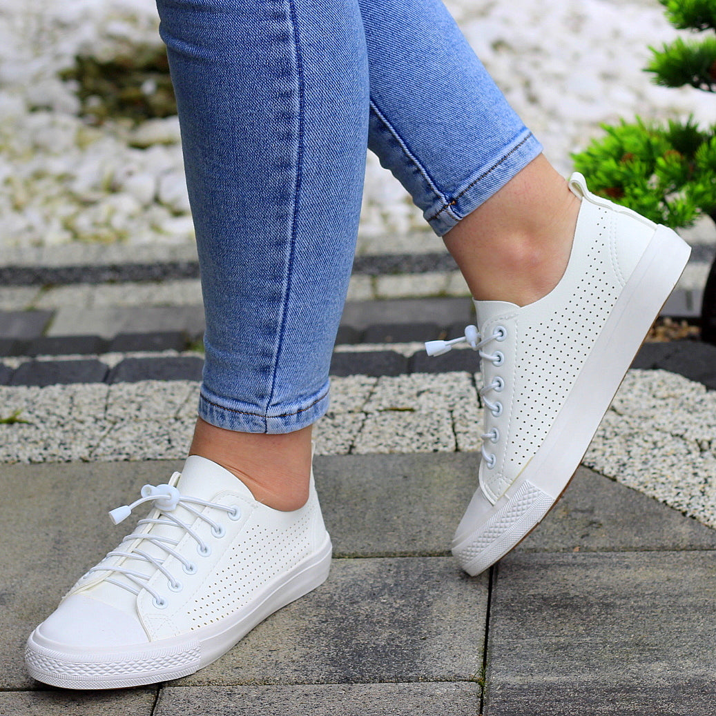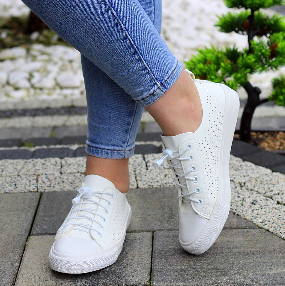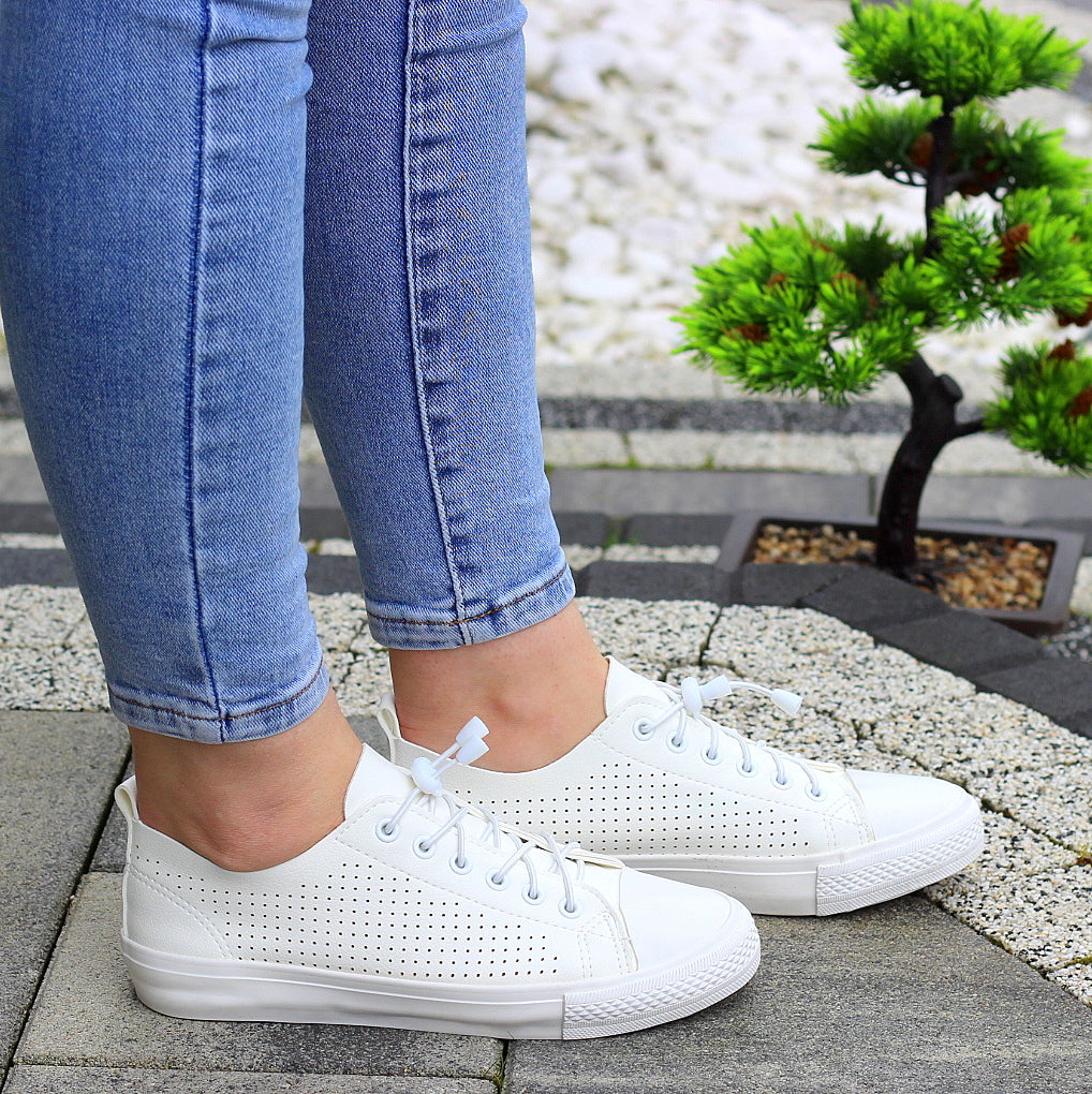 Białe trampki w dziurki mięciutkie sznurowane slim na wygodnej podeszwie .
