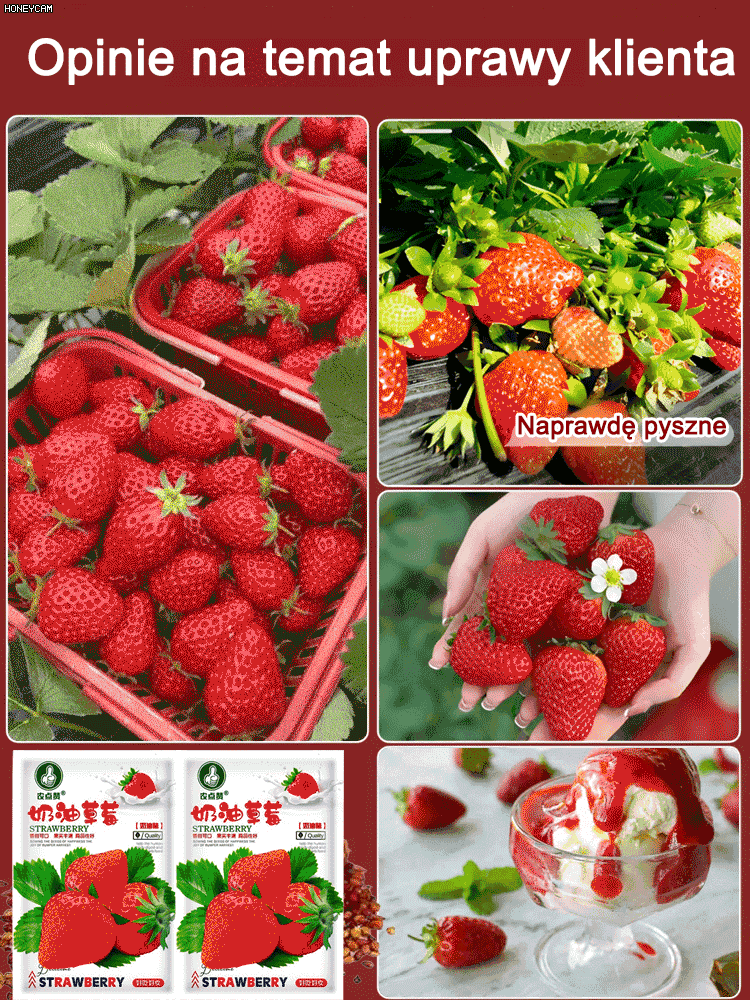 Olbrzymie, super słodkie, soczyste pestki truskawek w kremie