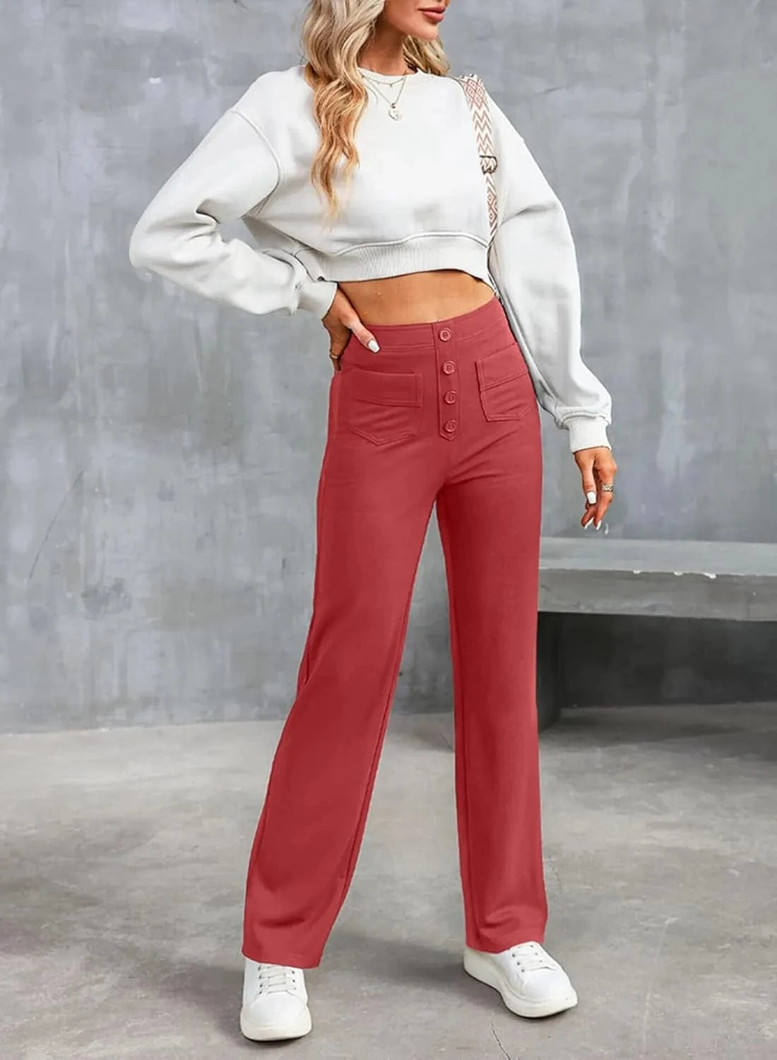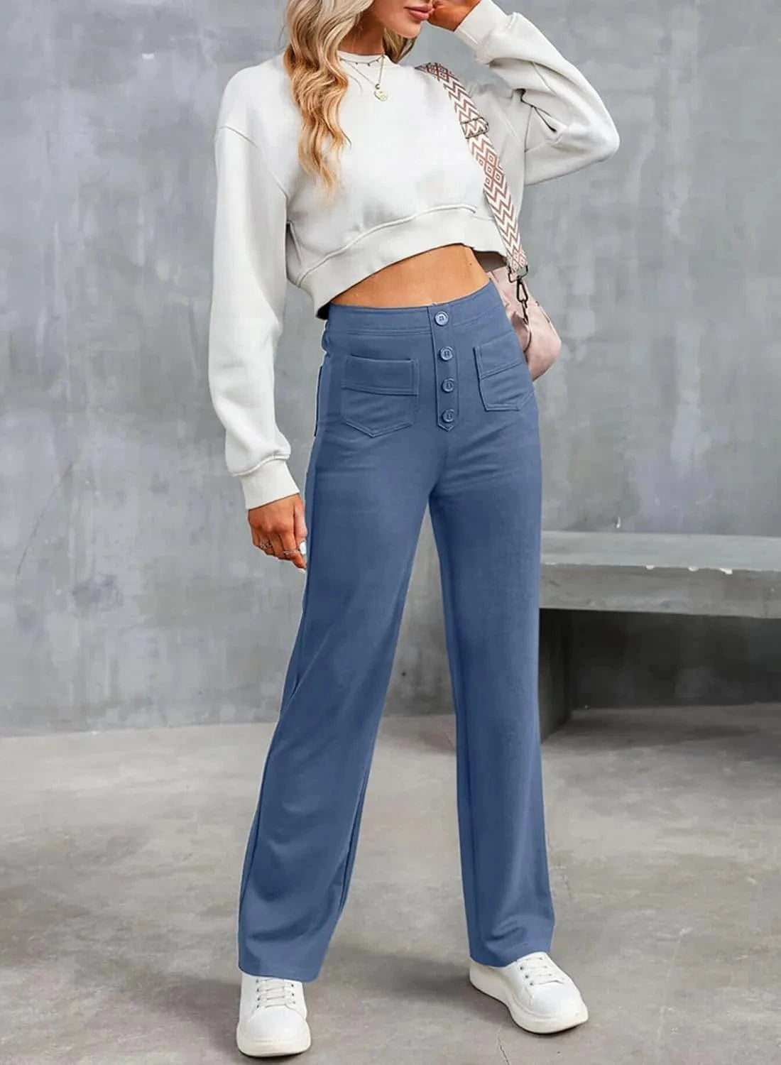 ♻ Stylowe detale guzików: Kto powiedział, że guziki muszą być tylko funkcjonalne? Nasze spodnie mają piękne akcenty guzikowe.