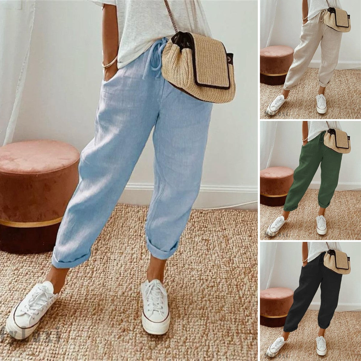 Opakowanie zawiera: 1 x casualowe lniane i bawełniane spodnie damskie.