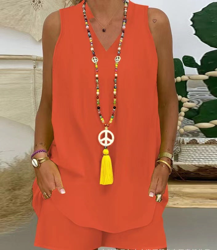 Elegancki dwuczęściowy komplet: krótki rękaw z dekoltem w serek + spodenki