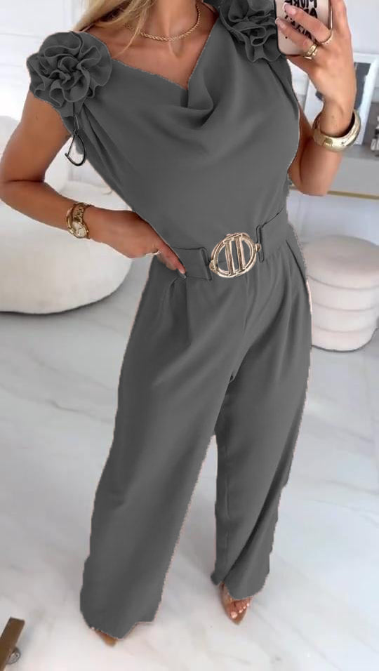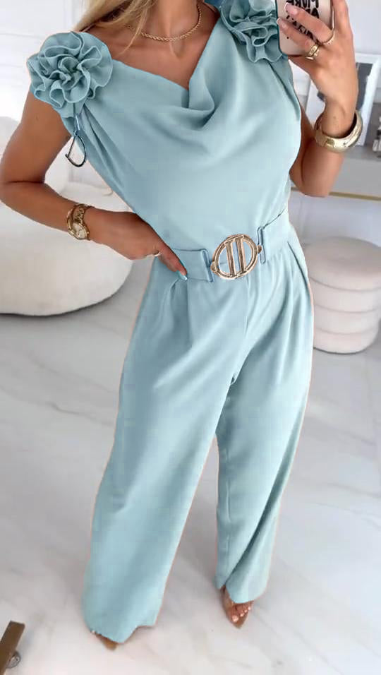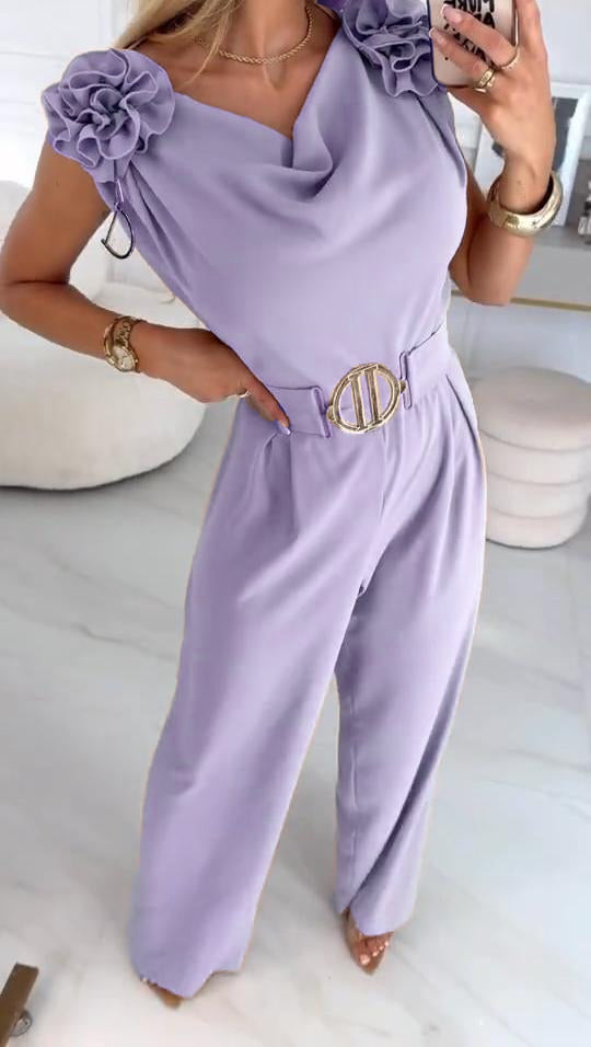 Letni damski kombinezon bez rękawów z trójwymiarowym kwiatowym wzorem i dekoltem w serek
