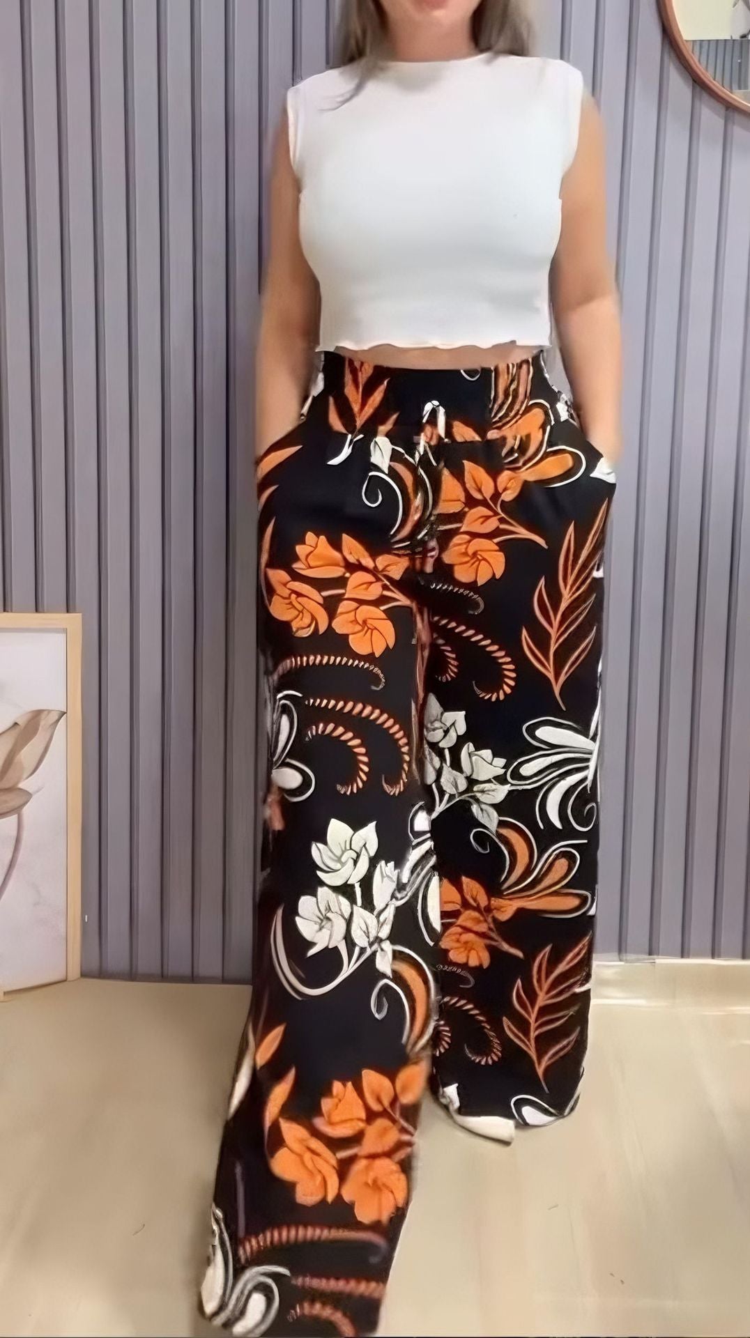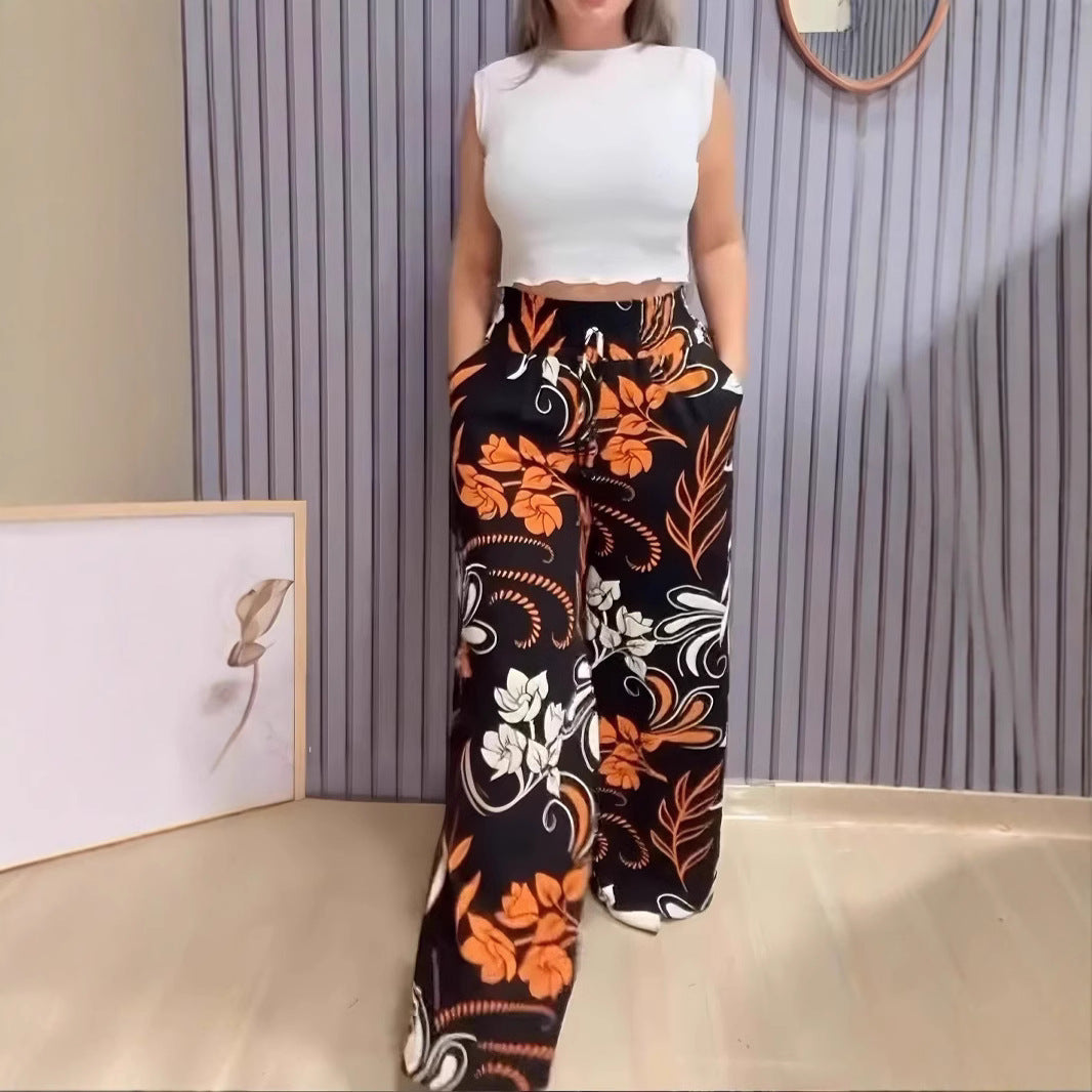 Spodnie z szerokimi nogawkami z nadrukiem na lato 2025